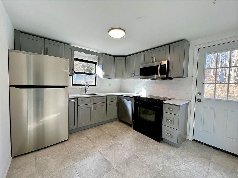 Tastefully remodeled 2 Bedroom, 1 Bath RANCH HOME that is ready to move in. Enjoy this light filled single floor living plan consisting of a large new eat-in kitchen w/quartz counter tops, S/S appliances and ceramic tile floor, large living room with stone fireplace, 2 generously sized bedrooms, a white bath with oversized shower and more. This home is equipped with 3 new energy efficient ductless wall units for heating and cooling, new vinyl floors throughout, freshly painted. Add'l storage and washer/dryer hook-ups provided in the unfinished basement. Close to downtown, Lake Mahopac and waterfront park, library, bike path, playgrounds, roller hockey rink, restaurants, shopping, bus stop, and more. Tenant is responsible for all utilities lawn maintenance and landscaping & snow/ice removal from driveway and walkways. Rental Application & credit check required. Landlord requires Tenants to have a minimum 700 credit score. Call today! This is one of two houses on the property. Credit check and income verification, no smokers, no pets! Landlord requires Tenants to have a minimum 700 credit score.