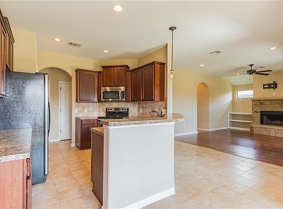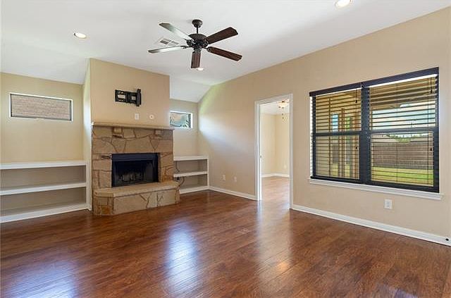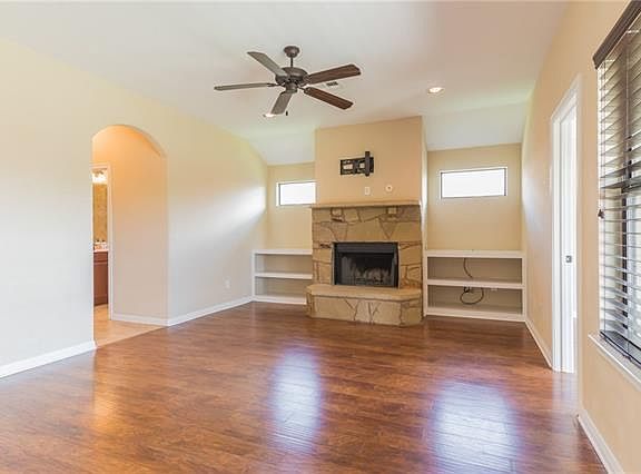 Single story, 3 bedrooms PLUS office (or 4th bedroom Option), large yard, & low HOA! Stunning build features elevate this home w/ rounded corners, tall ceilings, 3 side stone, gas, covered back porch, wood floors, fireplace & more! The open floor plan allows for privacy with the master secluded from the rest of the bedrooms. The master bathroom is spacious wi/ separate shower & tub, large closet. Additional features: fans in all bedrooms, water softener installed, abundant natural light, lots of storage