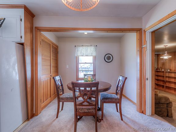 Welcome to your new home sweet home! Step into this charming three-bedroom abode, where original hardwoods lie beneath plush carpets, awaiting your personal touch. Enjoy gatherings on the spacious covered patio, complete with an in-ground storm shelter for peace of mind. Need extra storage or a workshop? A secondary detached two-car garage has you covered. With a generously sized backyard, recently painted kitchen cabinets, and two cozy living areas, this warm and inviting retreat is ready to welcome you home! One last thing...the refrigerator, washer, and dryer STAY!
