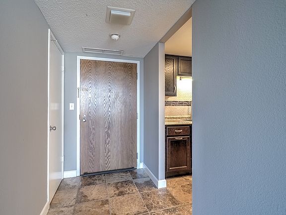 Gorgeous, newly remodeled 1 bedroom, 1 bath condominium on the 13th floor with a stunning view of downtown. New granite looking counter tops, beautiful mosiac tile backsplash, stainless appliances. Rich wood laminate flooring throughout & new paint. This unit comes with its own 1 car garage space. HOA pays all utilities. You will not want to miss this one!