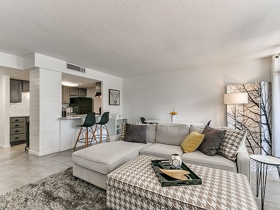 This high-rise condo offers a well-appointed living space, perfectly situated to provide stunning views of the downtown skyline. The open-concept condo is stylishly furnished and equipped with kitchen items and linens for long stays. Assigned surface lot parking, Utilities and Cox Hi Speed Internet are included. Complex is gated with on-site security.