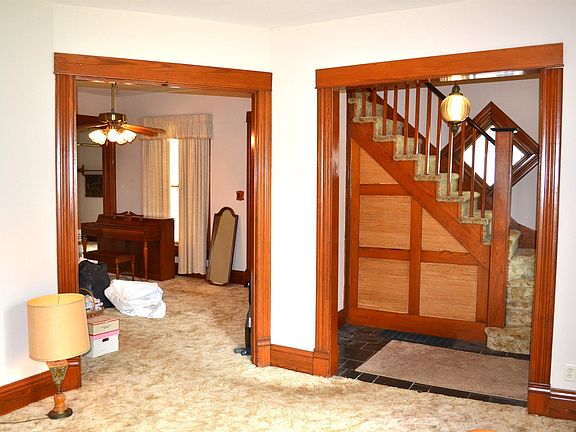 Charming 1 1/2 story home featuring 3 bedrooms and 3 baths. This beauty boasts original woodwork throughout, adding timeless character. Enjoy the spaciousness of a large lot and relax on the expansive concrete patio in the back. The partial basement is nearly finished, offering extra living space or storage. Convenience is key with main level laundry. A detached garage provides additional storage or parking. Don't miss this blend of classic charm and modern amenities!
