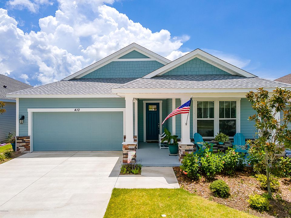 CURRENTLY UNDER CONTRACT, SELLER ACCEPTING BACKUP OFFERS Like New Samuel Taylor Built Home in Breakfast Point with a beautiful pond view! This highly sought after Trigger floor plan features 3 bedrooms and 2 bathrooms with tile flooring in a diagonal pattern throughout the home! The open living floor plan makes the upgraded kitchen your centerpiece. The kitchen has upgraded gray cabinets with soft close features, pot and pan drawers by the stove, built in cabinet slide out storage and under cabinet lighting to make the glass backsplash pop! Both bathrooms have been beautifully upgraded with quartz counter tops, gray cabinets with soft close features and a beautiful listello in the showers! The master bath has a rain head shower, taller toilet, double vanities and walk in closet with custo