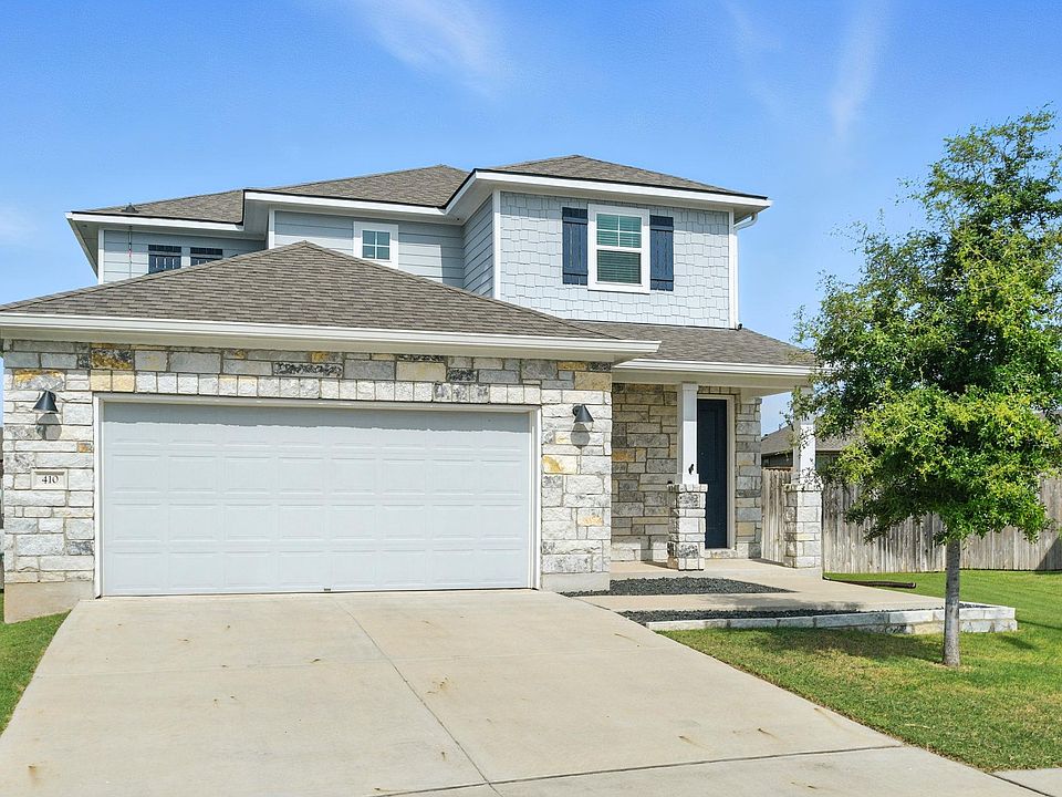 Discover Your Ideal Home in Pecan Park! Step into modern living with this spacious 2,360 sqft two-story gem in sought-after Pecan Park. The open-concept main level features a seamless flow between the kitchen and living room—center island, granite countertops, recessed lighting, and plenty of natural light make it the heart of the home. The luxurious primary suite downstairs boasts a generous layout, dual vanities, and a walk-in shower for a serene retreat. Upstairs offers flexible living with an open bonus room, two comfortable bedrooms, and a full bath—ideal for family, guests, or a home office setup. The laundry is thoughtfully plumbed for a sink, as is the back porch plumbed for an outdoor kitchen (ready for your customization), and the home conveys with fridge, washer, and dryer included. Outside, enjoy an ample backyard on a 0.244-acre lot—perfect for relaxation or entertaining. Solar-efficient living comes standard with 31 solar panels that reduce energy costs; a transferable loan presents a great opportunity for future savings. A current inspection report is available in MLS for added buyer confidence. Located within the master-planned Pecan Park community, enjoy quick access to the sparkling community pool, playgrounds, greenbelt trails, and Colorado River hike-and-bike paths—enhancing both lifestyle and leisure. You're just minutes from charming Downtown Bastrop’s shops, restaurants, and riverfront. Commuters will appreciate being only a short drive from SpaceX, the Boring Company, and Tesla facilities, with the Austin airport and Circuit of the Americas also within easy reach. This beautiful, energy-smart home balances functionality with modern comfort in a vibrant community—ready for your next chapter!