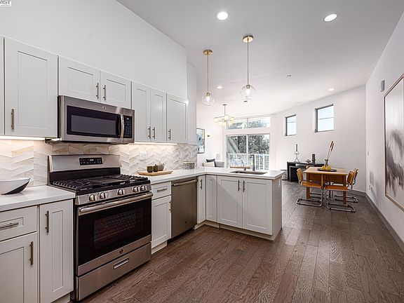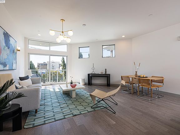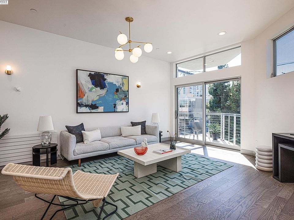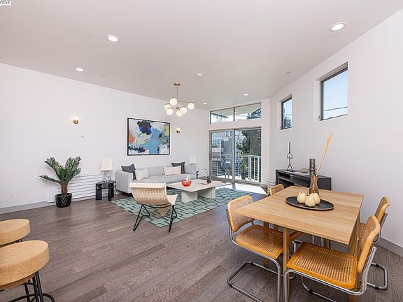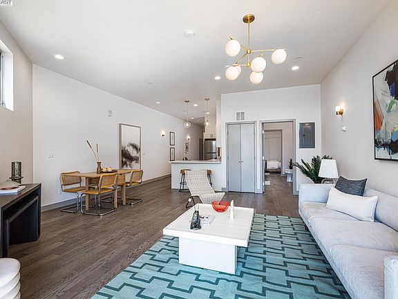 Sleek open design with a beautiful palette of earthy wood floors, glossy white tiles, Parisian lighting, and sophisticated porcelain tiled baths. The 11' volume ceilings and clean, crisp angles are flooded with natural light and a general feeling of airiness. An interactive breakfast bar allows great interaction in the kitchen. Gas cooking and stainless steel appliances are efficient and polished. Baths are generous sized with beautiful tiled surrounds, wall mount sinks, and additional storage. Walkscore of 98 confirms the location is ideal. BART, Amtrak, and SF ferry all within a 10 minute walk. "Cheers-like" Seawolf downstairs and a plethora of breweries, bars, restaurants, and music venues just steps from where you live. Enjoy the Bay trail and abundant watersports. Crisp new community and an amazing lifestyle!