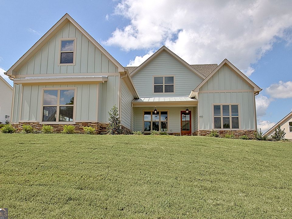 Ready for a September Delivery! Sitting on Lot 111 in The Reserve at Keg Creek Landing, this modified Grovetown Plan offers Four Bedrooms, Four Full Baths, Expansive Bonus Room and Three Car Garage with Extended Parking Pad. Greeted by a Covered Front Porch, Stone Water Table, and Metal Roofing, this home brings exterior allure to Phase II. Inviting Foyer opens to Dining room with Wainscotting and leads to Guest Room/Office on Main. Adjacent full Bath showcases gray Subway Tiled Tub Surround with built-in Niche plus Vanity with Quartz top and Moen fixtures. Great Room boasts Wood Beams and Stone Floor to Ceiling Gas Start Fireplace with Wood Mantle. Kitchen offers white Soft-close Shaker Cabinetry, Stained Custom Island with Trash/Recycle Drawer, Custom Vent Hood, Stainless Steel 6 Burner Frigidaire Professional Gas Slide-In Range, Quartz Countertops, Tiled Backsplash, Under Cabinet Lighting, and Two Pantries with Custom Shelving. Breakfast area adorned with chandelier opens to Double Rear Patios with Hardie B&B ceilings, all overlooking Community Open Space. Primary Suite on Main features low profile Coffered Ceiling and custom Barn Door entry to luxurious En-suite Bath. Bath presents Raised Double Sink Vanity with Quartz top, Soaking Tub with B&B Surround, Tiled Shower with Niche, Bench and Frameless Glass Door, Separate Water Closet and Two Walk-In Closets with Custom Wood Shelving. Wide Stairwell brings you to the Upper level which provides an En-Suite Bedroom with tub to ceiling Subway Tiled Tub Surround with Niche, Fourth Bedroom, Oversized Bonus and additional Full Hallway Bathroom with Quartz Topped Vanity, and Separated wet area with Tiled Tub Surround and Hexagon Tiled Floor *10' Ceilings on Main *8' Interior Doors *Site Finished Hardwood Floors *Designer Lighting Package *Custom Trim Package with Crown Molding *Laundry Room on Main *Hardie Siding *Spray Foam Insulation *Trimmed and Painted 3 Car Garage *Extended Parking Pad *Professionally Landscaped Yard *Irrigation *Hardie Siding *Keg Creek offers a Pavilion, Pool, Pickleball Court, Sidewalks, Street Lights, Connection to Senoia's multi-use Trail, Easy Golf Cart Access to downtown Senoia and close proximity to Seavy Street Park *Contact Listing Agent Tracy Kirkland directly for more details 770.557.2315
