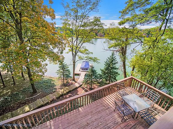 FABULOUS LAKEFRONT HOME WITH 290 FEET OF LAKEFRONT IN A BEAUTIFUL PART OF THE LAKE. TREMENDOUS VIEWS. .75 acres! This home has been beautifully renovated including the kitchen with white cabinets, granite counters, stainless appliances. Enter the large foyer and enjoy the large living and dining rooms with wood floors, kitchen has an eating area which is adjacent to the outdoor large deck. Super for entertaining. Upper level includes large master suite with its own deck and large remodeled bathroom. Three other good sized bedrooms and bath complete this level. The lower level has a wonderful family room with wet bar, fireplace and deck going out to a lower level. Laundry and bath with shower are also on the level. Lowest level consist of a 5th bedroom and game room. Garage has epoxy floor. Enjoy the lake from your multiple decks and private boat dock. NO EXEMPTIONS ON TAXES. WITH EXEMPTIONS TAXES WOULS BE ABOUT HALF.
