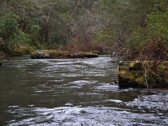 This custom-built, WATERFRONT LOG HOME is nestled on over 5 ACRES along the pines of the babbling WHITE CREEK (30 ft across x 3-4 ft deep). Inside, you'll be captivated by the the majesty of 23 ft. lofted ceilings and wrapped in the warmth of the wooden textures from logs all around to the HARDWOOD FLOORS, with a spacious 5760 sqft and 4b/3ba. The kitchen features a large island plus bar-top area perfect for entertaining guests. Oversized MASTER ON MAIN. Upstairs, the loft features a pool table and a library. The WALKOUT BASEMENT is partially finished, complete with HVAC. The exterior features waterfront access, a gazebo, HOTTUB, wrap-around porch, and 5 GARAGES - three singles and a double plus a 1 bed/1 bath APARTMENT above. FIBEROPTIC High-speed Internet. There are no known concerns/issues with the home or property. Sellers are offering an Ultimate Choice HOME WARRANTY with an AS-IS purchase. HOA fee covers maintenance on remote-controlled neighborhood gate, 22-acre field & picnic area (across from the property), and private road maintenance. Restrictions against farm animals (horses, goats, etc.).