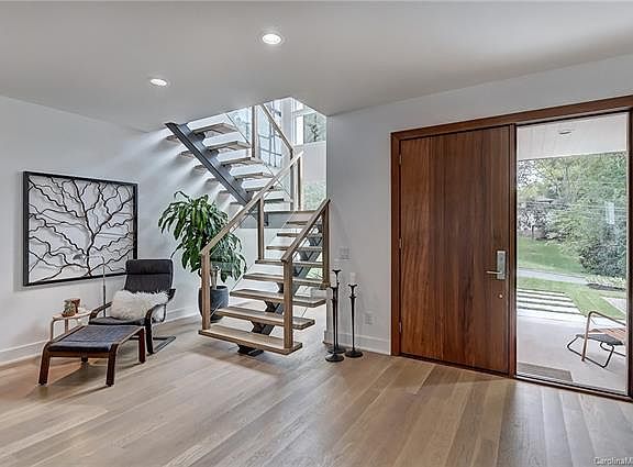 A truly one of a kind modern show stopping home in the heart of downtown Davidson. The spectacular curb appeal, windows, angles, and finishes have the total package. One of the largest private deep yards in the area that extends beyond the creek. Entry way to a floating staircase, suspended fireplace, and open to gourmet kitchen with back scullery. Oversize two car garage with full one bedroom apartment with similar finishes, full kitchen, and laundry. Thoroughly thought out floor plan for life's entertainment and conveniences. Walk to the charming downtown Davidson shops, restaurants, events, and even Davidson College.
