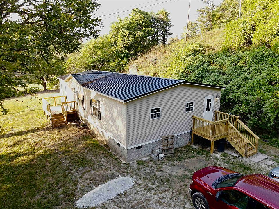 Take a look at this beautifully updated 2009 double-wide home, perfectly situated on approximately 3.98 private acres — all within the convenience of city limits! This spacious home features numerous updates, including new flooring, fresh paint, and modernized bathrooms. One bathroom boasts a stylish tiled shower, while the primary suite offers a large ensuite with both a shower and a soaking tub. The home is already on a permanent foundation, adding long-term value and peace of mind. Enjoy peace and quiet from the new front and side porches, or take advantage of the barn for extra storage. The property is accessed by a gravel road, offering added privacy and a country feel — just minutes from town amenities. Don't miss out on this unique blend of seclusion and convenience!