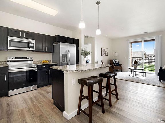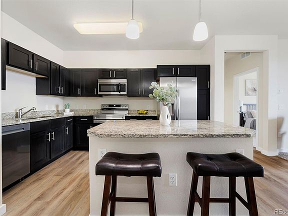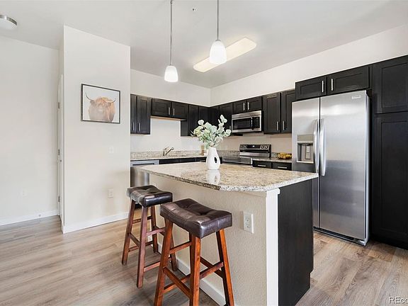 Beautiful open floor plan condo with new stainless steel refrigerator and stove, granite countertops, new garbage disposal and new laminate flooring throughout including carpets. The large full bathroom has a stackable washer and dryer along with new vanity for plenty of space and convenience. The large primary bedroom is big enough for a king size bed and walk in closet. You will love relaxing in the evening on the balcony and enjoying sun filled mornings. Just Located within walking distance to the recreation center, and neighborhood park, including direct access to local greenspaces and trails that will have you enjoying the outdoors right at your home! Bordered by convenience on all sides, with several grocery store plazas and shopping centers nearby. Walking distance to the light-rail with close access to highways and local public transportation, this property is a commuter's dream. Unit comes with a one exclusive right to park spot. Community features clubhouse, fitness center and pool/hot tub. Professionally cleaned and ready to move in. Keep it for yourself or a great investment opportunity.