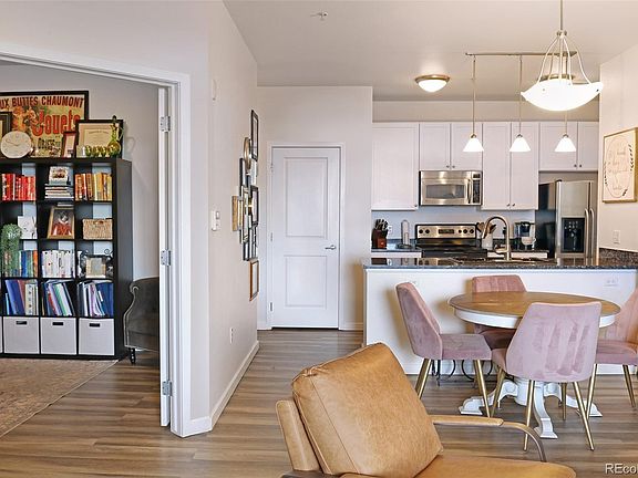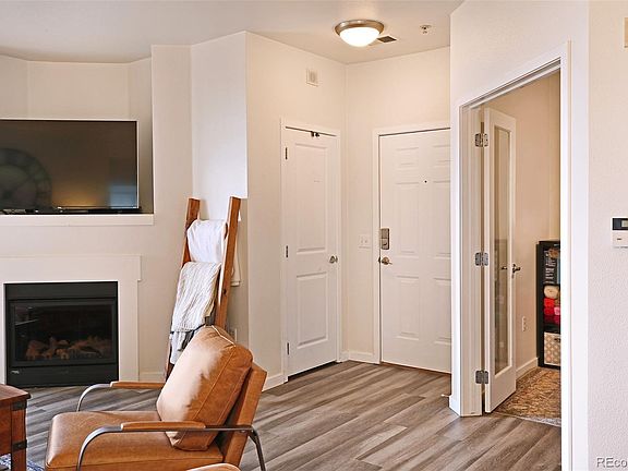 Beautifully updated condo in the heart of Denver close to a light rail station, I-70 access and minutes to Downtown Denver, RiNo, City Park and more. This condo is located on the second floor in a quiet building with direct outdoor access and a deeded reserved parking spot. Enter through your new front door and enjoy the spacious open floor plan with updated finishes and vinyl hardwoods throughout. Relax in the large living area with built-in gas fireplace and double doors that lead out to your private balcony with mountain views. The kitchen features black granite countertops, white cabinetry, stainless steel appliances and ample storage for all your cooking needs. Just off the living area and through a pair of glass french doors is a non-conforming bedroom that could also be the perfect work from home office. Next to the kitchen is a laundry closet with a stacked washer/dryer and an updated half bath. On the other side of the living area you'll find the large primary bedroom with ensuite bathroom complete with a double wide soaking tub/shower and two closets perfect for all your storage needs. Built in 2005, community amenities include a pool/hot tub, clubhouse, and fitness center. This condo is move in ready and low maintenance living at it's finest!