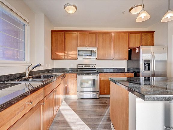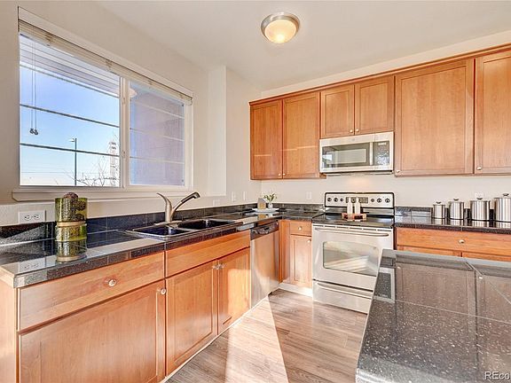 Welcome home to the beautiful Park Hill Village community! This is one of the largest units in the complex with fabulous mountain views! The gourmet kitchen features luxury vinyl flooring, a large pantry, ample counter space, a dedicated workspace, high end tile countertops and beautiful stainless steel appliances. The kitchen flows nicely into a large, open dining and living area. The electric fireplace is situated perfectly to warm up in front of on cold evenings! A half bathroom is located on this level as well. The patio offers great outdoor space to enjoy! Upstairs you will find a secondary 3/4ths bathroom and a secondary bedroom which would make a wonderful home office, guest bedroom or playroom. A large linen closet and a stackable washer and dryer are located conveniently on this level as well. Down the hall, you will find the spacious primary bedroom with double closets and a private bath. The home got NEW carpet and paint in the summer of 2021. A brand new furnace was put in July 2022 ($7000 value) and a new dryer in July of 2021. This unit includes a one car garage, an off-street parking space and a storage closet right as you enter the unit for all your outdoor items. This home is walking distance to the light rail station, Starbucks and Qdoba and only a short drive to the Denver Zoo, Denver Botanical Gardens, City Park, Trader Joes, Culinary Dropout, Postino and Snooze! This beautiful home won't last, so schedule a showing today!