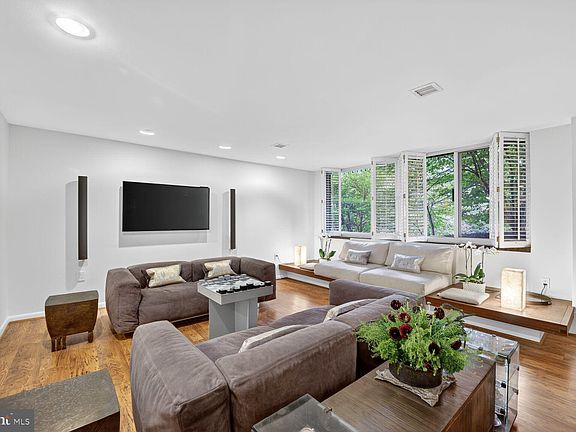 Chic, modern turn-key condo at a “Best Address” building in Cathedral Heights with stunning decor. Luxury amenities include a year-round heated pool, adjoining sun deck, full gym, sauna, yoga studio, bath facilities, conference room and library. This residence features a welcoming foyer leading to a large living room with built-in banquette and windows overlooking lush landscaping. Expansive dining room adjoins with built-in cabinets, seating 12, perfect for entertaining. The contemporary, spacious gourmet kitchen has Jenn-Air appliances, gas stovetop, two ovens and wine fridge. The pristine primary suite with built-ins and plantation shutters includes a luxurious ensuite bathroom and walk-in closet. The den or second bedroom features an ensuite bathroom, office/library, and pocket doors separating it from the dining room. This mid-century, International style building with doorman has 24/7 concierge service, guest parking, and onsite building manager. Additional storage and garage parking for one car are included. Primary bedroom designer built-in furnishings convey as does Mooi Heracleum chandelier. Furnishings available for purchase include: Bang & Olufsen TVs, Ligne Roset dining table, Janus et Cie rattan La Luna lounge chair and ottoman, Alivar Daytona nubuck sofas, Frag leather dining chairs, marble console table. Must-see this unique contemporary layout in sought after Cathedral West, located overlooking Glover Archbold Park.