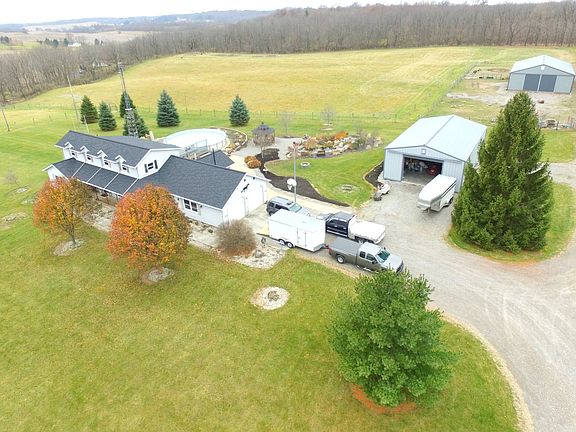 Scenic 11.526 acre property with 4 BR, 3.5 BA home with semi finished basement, quality fenced pasture, 30'x50' shop, 40'x64' pole barn, & 24'x30' 2 car attached garage! Interior features large eat in kitchen with ample counter space & storage, massive master suite with custom shower & dual closets, office, sun room, rec area in basement with bar, & more! Exterior features stamp concrete patio, large koi pond with water fall, above ground pool, gazebo, shop with 2 overhead doors & concrete floor, pole barn with stalls designed for live stock, horse barn with 6 stalls & adjacent pasture with fenced access to larger rear pasture, & more! GEO THERMAL HEATING & COOLING, HOUSE GENERATOR HOOK UP, & PROPANE HEATED ATTACHED GARAGE, NEW ROOF 20016 ON HOUSE