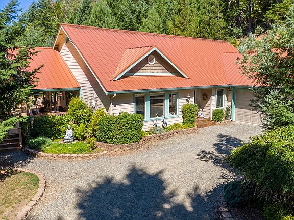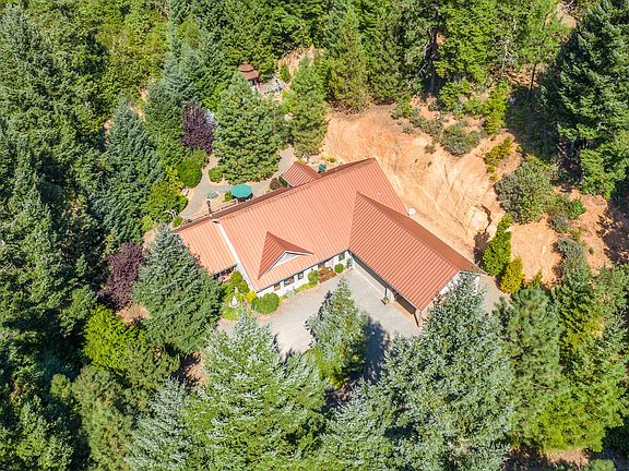 High A Top Your Own Private Mountain Retreat! Priced Very Competitively for quick sale! This 2008 2335 Sq ft custom home on 34.78 is stunning in every way. Just moments off of the Wolf Creek I-5 Exit on Coyote Creek Rd. Beautiful meandering approach you will never get tired of the drive back and forth to home. 3 Bedroom and 2 1/2 Bath Downstairs on the main floor. 2 Bonus rooms upstairs. This home is so meticulously cared for with incredible attention to detail. Fire resistant siding, metal roof, Beautiful decking, hot tub, Gazebo, The 1/2 covered and 1/2 sun Deck is wonderful for entertaining. The grounds are well cared for with beautiful landscaping. Seller planted trees that over time covered some of the gorgeous view. They have decided to let the new owners expose that if they wish, or leave the trees where they are. Don't Blink! Its a Beauty!