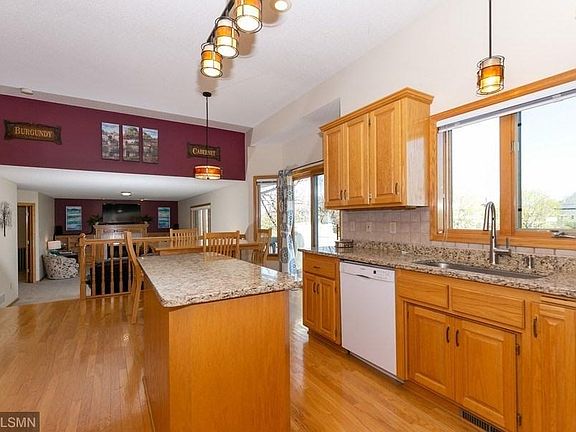 Sit on your spacious deck and take in the view onto Edinburgh Golf Course and the 2nd tee box. Meticulously maintained. Most windows have been replaced, much of the home has been freshly painted, along with new carpet through a majority of the home. Ideal home for entertaining or for those intimate family gatherings. Spacious kitchen area with granite counters and a nicely appointed center island. Main floor office. Nicely finished lower level with a second fireplace and an abundance of storage.
