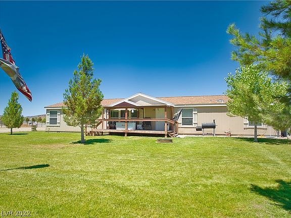 $3000 closing cost to buyers. 4 BEDROOM 2 BATH ON 1 ACRE FULLY FENCED. GREAT MOUNTAIN VIEWS ALL AROUND. DEAD END CUL DE SAC. VERY CLOSE TO BLM LAND. VERY FEW NEIGHBORS. TRESS IN FRONT AND BACK YARD, HOME FEATURES 2 LIVING ROOMS, OPEN FLOOR PLAN, OPEN KITCHEN FEATURING A LARGE KITCHEN ISLAND, WALK IN PANTRY, LARGE MASTER BEDROOM, MASTER BATH W/SKYLIGHT, HUGE MASTER WALK IN CLOSET, NEWER MANUFACTURED HOME FEATURES LOW-E WINDOWS, R33/11/22 INSULATION, 30 YEAR ROOFING SHINGLES, 50 YEAR SIDING, COVERED FRONT PORCH, NEWER FRONT AND BACK LAWNS. ENERGY EFFICIENT, VAULTED CELINGS, PERMANENT FOUNDATION, CEILING FANS IN EVERY ROOM.