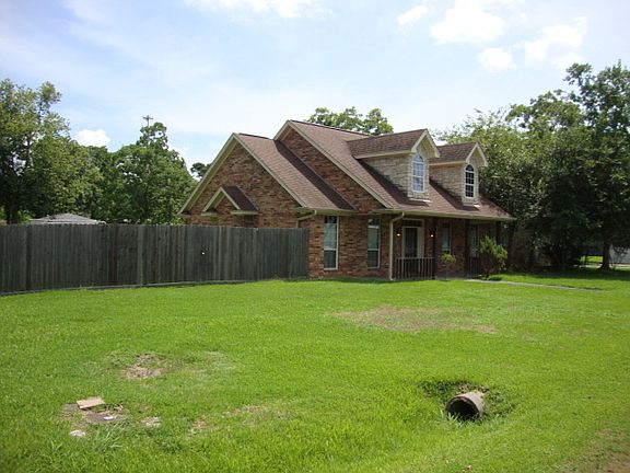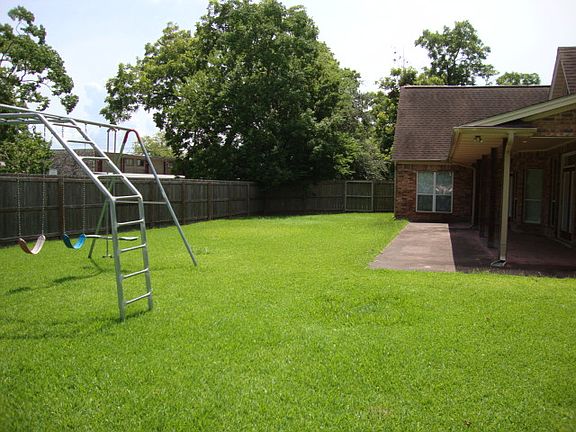 Beautiful stained-pattern concrete flooring throughout downstairs. Open kitchen,den,Breakfast area, eating bar. Solid surface counter tops. Formal Drm. Upstairs gameroom, media room. Large corner tree shaded lot with rear access for RV, Boat, etc. PN-G Schools, quiet area , near shopping and churches.