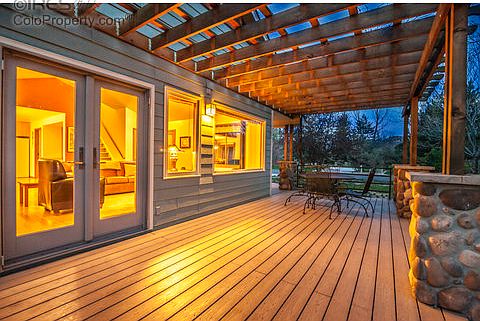 Beautiful Custom built home on a park like lot. Light pours through the windows and skylights displaying the bamboo floors, vaulted ceilings and gas fireplace in the living room. Sounds of the Poudre fill the front porch and grape and trumpet vine covered side deck. With three bedrooms, three bathrooms and a walk in master closet, there is plenty of space. You'll love the radiant heat, granite counters, cork bedroom floors and the amazing condition of this home. Enjoy your visit today!