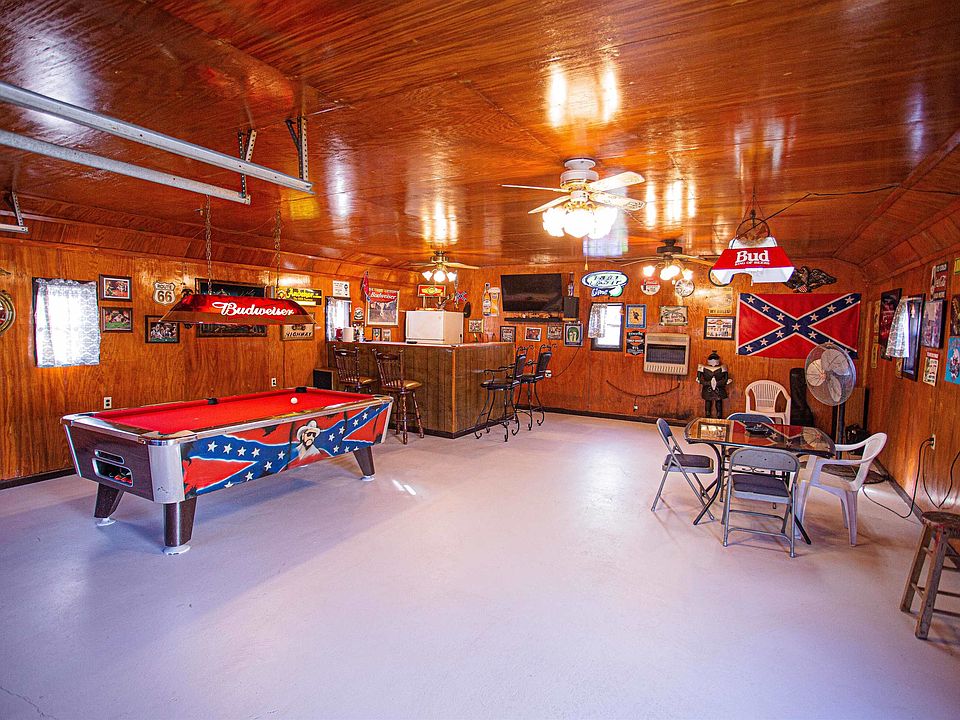 NEW PRICE!! Cozy & comfortable 2 bed/1 bath home includes unbelievable man cave that will WOW you! Home is well maintained - HVAC & water heater 5 yrs old. new windows 6 -7 yrs old. Large front porch perfect for morning coffee. The man cave is great for relaxing or entertaining. Includes shed to store all your yard equipment. 2nd septic tank with utility lines run to the right of the home. In shop, bar, heater & portable propane tank, 2 hanging lights & TV wall mount will not remain.