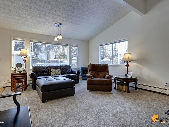 Southern exposure & sunlight are important when trying to survive long Alaskan winters! This immaculate west-side ZLL harnesses all that light w/ a wall of south-facing windows & vaulted ceilings that amplify its open living. Bonuses: direct-vent gas FP, updated lighting, newer carpet, all BR's up (master w/ private BA), large rear deck, & shed. Located close to parks, trails, mid-and downtown!
