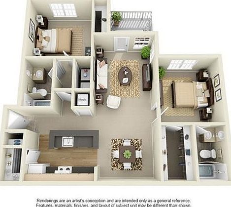 Third floor two bedroom two bath with vaulted ceilings. Upgraded unit with new flooring. Come visit today! 10 Month lease for this price. Does not included $28 service bundle. Prices change daily.
