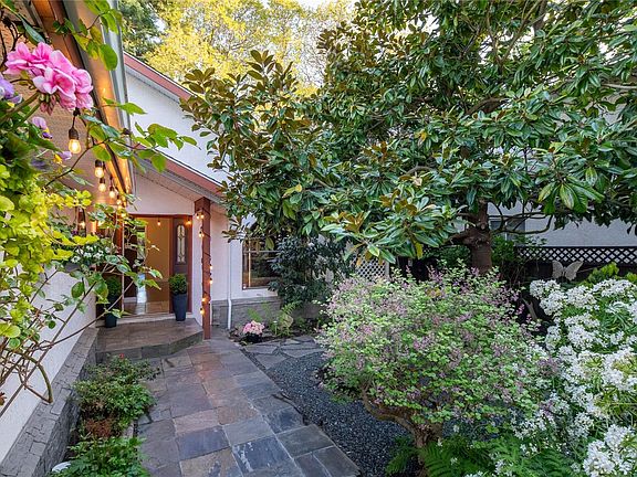 Nestled in a lush private oasis, 4100 Larchwood in Gordon Head offers a rare blend of seclusion and convenience in a central location. Enveloped by mature gardens & backing directly onto Blair park, this is the dream for both family life, empty-nesters, and pet owners. The entire top floor is a luxurious "primary-suite retreat" with a soaker jet-tub, skylight, shower, side-by-side sinks, a reading/nursery nook, & seemingly endless closets. Notable upgrades include a gourmet-inspired kitchen with ample storage, updated bathrooms, & a private park-like backyard. With the peacefulness of this urban setting, it feels like your own "Private Oasis in the City." With the meticulous attention to care over the 27 years of current ownership, 4100 Larchwood Dr. combines the tranquility of a secluded retreat with the conveniences of modern living, offering a turn-key, highly sought after lifestyle in the city that is ready for immediate enjoyment, today.
