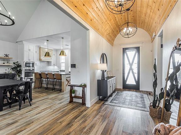 Stunning Modern Farmhouse in quiet gated community. Amazing upgrades from standard builder finishes like the gorgeous fireplace surround & cabinetry; wood barrel ceiling in entry; oversized garage & MUCH MORE (see suppl for details). This fabulous home graces the largest lot in the neighborhood & backs to a greenbelt & pond. Step inside to rich wood floors, designer fixtures and crisp white walls w/ebony & honey stained wood accents. An open floor plan offers the perfect place to entertain inside while the living room flows outside through double doors to the perfect additional "living space". The primary bedroom has a spa-like ensuite bath w/double vanity, garden tub, XL shower, walk-in closet AND a sweet coffee bar! The two secondary bedrooms share a full bath.
