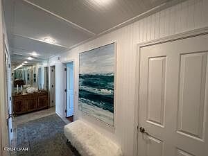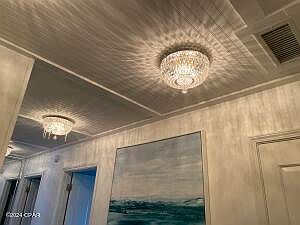EXCITING and rare opportunity to purchase a gorgeous 3 bedroom, 3 bath END unit in the prestigious Reflections Condominiums at Bay Point. Enjoy all that luxury living has to offer, including Reflections Serenity Spa, Bay Point Golf Course, Bay Point's new marina, and year-round special events. This private, waterfront unit was perfectly renovated with coastal decor and upscale features. As you enter, the long hallway greets you with four beautiful Schonbek Crystal chandeliers, white bead board walls, wood trimmed ceilings, and a sparkling mirror. The kitchen has been totally remodeled with white shaker cabinets, modern hardware, Swarorsky crystal knobs, and maintenance-free quartz countertops and backsplash. New stainless steel appliances include an induction range with an air fryer oven, a special LG refrigerator, and a dishwasher with integrated cabinet front. A spectacular bar with extensive LED lighting installed behind a Brazilian Crystalla Quartzite backsplash emits a warm, romantic glow throughout the main living area. The new LG ThinQ stacked Washer and Dryer conveys. A large custom coffee station was built in the dining area for easy service and added storage. New recessed lighting, beadboards and decorative woodwork were installed in the main living area to add to the coastal feel. Floor-to-ceiling sliding glass doors in the spacious living room and main bedroom provide sweeping, year-round views of St. Andrews Bay, the Gulf of Mexico, Shell Island and Grand Lagoon. A special tinting was applied to the glass doors for energy efficiency. The long porch which spans across the front of the living room and main bedroom serves as a cool, relaxing retreat to watch boats as they pass on the Bay. All three bedrooms and full baths are large and modern. A new water softener provides quality, conditioned water throughout the home. The owner has invested over $100,000 in upgrades and improvements to make this a very special place to live. The Reflections resort is well maintained and offers two large sparkling pools, cabanas, outdoor eating areas, and a fitness center. This golf cart community is fun, easy living, indeed!