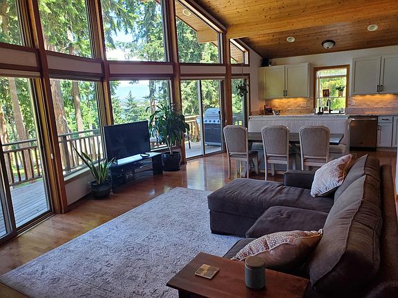 UPDATE: Due to the high volume of interest, we are not accepting new applications or walk-throughs at this time. Picturesque Views: 3 bedroom, 2 bathroom Lindal cedar home in private Stittwood neighborhood available August 2021. Close to Whistle Lake, hwy 20 and less than 10 minute drive to downtown shops and restaurants. Hardwood floors, newly renovated kitchen with granite countertops & high-end appliances, tons of natural light with floor to ceiling windows in main living area. Open floor plan with three sliding glass doors leading out to 900 sqft mahogany deck and hot tub are great for entertaining. Views of Guemes Channel, Padilla Bay and Cascade Mountains including peekaboo view of Mt. Baker. Newly finished walk-out basement with wet bar could serve as 4th bedroom. Pet friendly and fenced in yard perfect for dogs. Bonus half acre empty lot next door allows for extra privacy and space for kids or pets to play. Cozy fireplaces in each bedroom and living room. Large master's suite with private entrance, walk-in closet and spacious double-shower bathroom currently being remodeled. Renter responsible for all utilities. No smoking indoors.