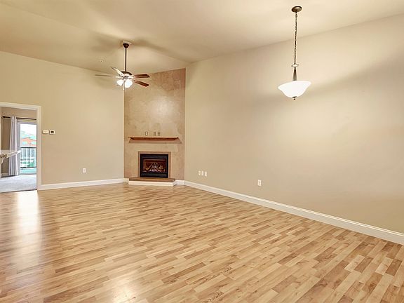 Great 866+/- sq ft top floor unit offers 2 bedrooms, 1 bathroom with an open concept floor plan and vaulted ceiling. The front entry welcomes you into a large living area with a corner natural gas fireplace and ceiling fan. Enjoy the spacious kitchen overlooking the living room area while you admire the granite countertops, stainless steel appliances, and large pantry area. The full bathroom offers a stackable washer/dryer unit. The primary bedroom has a walk-in closet, air conditioner wall unit and access to a private covered concrete balcony. This unit has (1) assigned carport parking spot and a private storage closet. Community clubhouse has a lounge area, fitness center, and pool table. Unit is located within the following school districts: Elementary/Middle School - Hellgate & High School - Big Sky. All showings by appointment only please. Call JoyceAnne R. Jodsaas 406-239-5726 or your real estate professional. The 4100 Condominiums offer a blend of contemporary comfort and convenience in Missoula's Captain John Mullan neighborhood. This 3-story complex houses 133 units, providing residents with a suburban retreat just minutes from the city's amenities. Situated off Mullan Road, the condominiums strike a balance between accessibility and tranquility, embodying the essence of Montana living with easy access to both urban conveniences and natural landscapes. Monthly HOA fees cover common area maintenance, structural maintenance, sewer, snow removal, and trash services. This fee structure contributes to the hassle-free living experience that The 4100 Condominiums aim to provide.