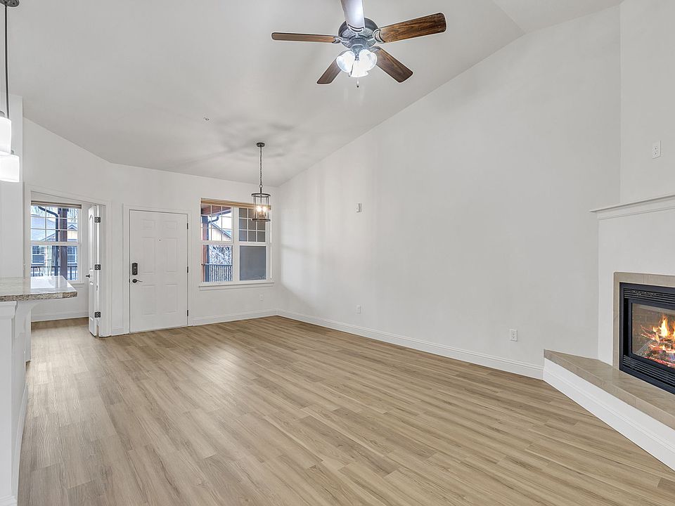 Price drop, bring offers! Step into this move-in-ready 2-bedroom, 1-bath condo offering open and inviting living space. Recently updated with brand-new Luxury Vinyl Plank (LVP) flooring, fresh paint, and modern light fixtures, this home is both stylish and functional. The open floor plan, enhanced by vaulted ceilings, creates a bright and airy atmosphere. The kitchen is equipped with Brazilian granite countertops, sleek stainless-steel appliances, and rich birch cabinetry. Stay comfortable year-round with A/C and a cozy gas fireplace. From your top-floor unit, enjoy peaceful mountain views while unwinding after a long day, or morning coffee from your private balcony. This condo also includes an elevator, one assigned covered parking space and guest parking. The building provides a range of amenities, including a clubhouse, fitness center, and game room. Within walking or biking distance to shopping and dining, this condo offers a combination of comfort, style, and location.
