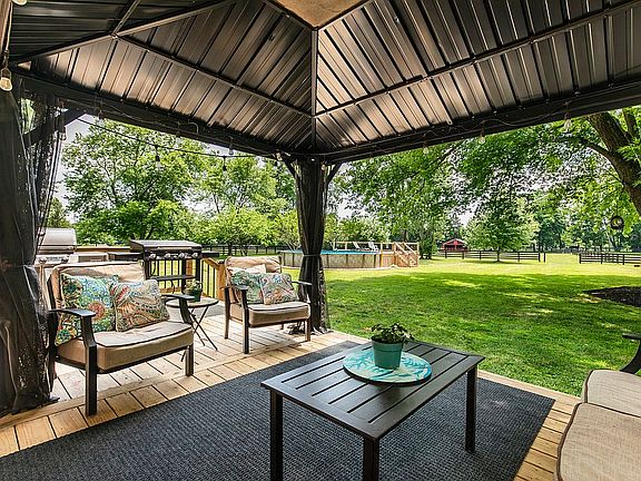'' Beautiful Mini-Farm in Crestwood!This spacious, well maintained, 3 bedrooms, 2 baths, ranch home sits on 5.2 acres of flat open land that includes 2 pastures, a 24x24 barn, fruit trees, a 27-foot round above ground swimming pool, and a 12x12 chicken coop with a 20ft attached run.This peaceful park like setting is fully fenced with black 4 board fencing (includes 2.4 wire) this is perfect for animals, or just relaxing under the 12x10 Gazebo enjoying the view of the large mature trees.Once inside, you will appreciate the large stone fireplace, deep soaking tub, sauna, and beautiful hardwood floors.This home has many updates including 2 large decks that are less than a year old, new water heater, new dishwasher, new oven, updated plumbing, and much more.''