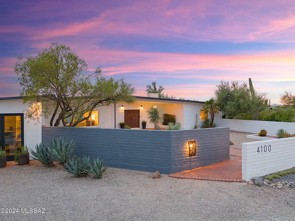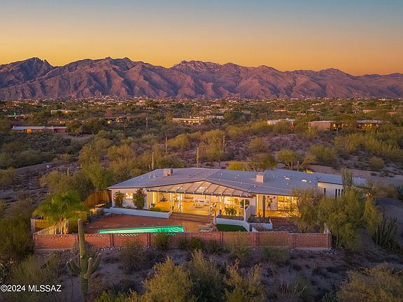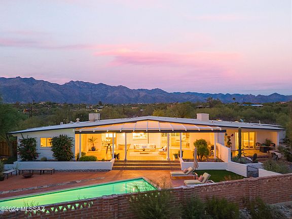 Seller will accept or counter offers between $1,335,000 and $1,390,000. Immerse yourself in luxury living within this stunning Mid-Century modern masterpiece crafted by the esteemed Veronica Hughart, celebrated for her innovative and sustainable architectural designs, renowned for her seamlessly blending modern aesthetics with eco-friendly practices, Hughart's creations elevate living spaces by harmonizing with nature, promoting well-being, and advocating for sustainable architecture. This meticulously renovated residence preserves the timeless allure of its 1961 origins while seamlessly integrating contemporary comforts. Works included- Josler Loerpabel House. Nestled atop a hill on a sprawling 1.88-acre private lot, it offers unparalleled vistas of the city and Catalina Mountains, enveloping you in the captivating beauty of the expansive front yard, where sleek porcelain floors, lofty beamed ceilings, and expansive windows frame panoramic views from every angle. Charles Bolsius' antique wood-carved doors, exquisite light fixtures, and meticulously painted interiors enhance the ambiance of each space. The thoughtfully designed layout features a luxurious split floorplan, showcasing exquisitely remodeled bathrooms all feature en suite bathrooms and a lavish powder room adorned with a striking cement tile backsplash. The primary suite exudes sophistication with a built-in bookcase, private patio, and a Classy Closets-designed closet. Pamper yourself in the opulent en suite bathroom, boasting a porcelain soaking tub, Italian marble accents, and a separate glass-enclosed shower. The gourmet kitchen, a focal point of elegance and functionality, boasts Canyon Cabinetry, Detkton Counters, and high-end stainless-steel appliances, including a Monogram refrigerator and a sub-zero cabinet drawer beverage refrigerator. The adjacent studio or den, complete with a wet bar and Milgard fiberglass double doors, offers additional living space for utmost versatility. Outside, the meticulously landscaped backyard by Civano Nursery beckons with an array of entertainment options, including an expansive patio, sparkling pool, lush turf, and captivating city views. Whether relaxing or hosting guests, savor the epitome of luxury living amidst Tucson's serene sunsets and twinkling city lights. Experience the pinnacle of sophistication and comfort in this meticulously curated sanctuary, where every detail embodies refined living at its finest.