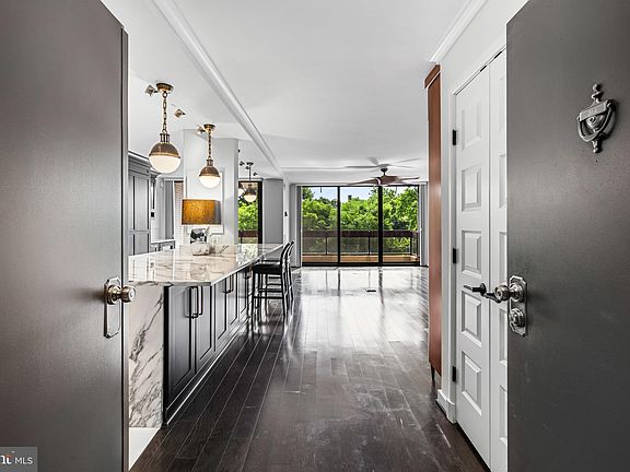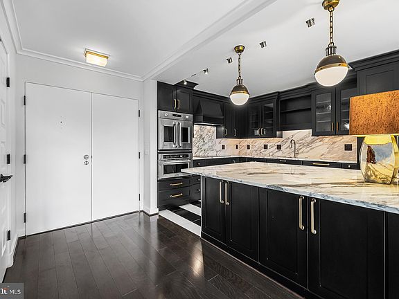 Total, complete renovation! 3 Bedroom, 2 Bath 1555 square foot unit. Open concept main living areas with stunning custom Kitchen with Calcutta Gold marble counters and backsplashes, stainless steel appliances and induction cooktop. Hardwood floors throughout. Beautiful modern Primary Bath and Hall Bath. Custom built-ins including Murphy bed, custom fitted closets. Deck provides views of Guilford. Building amenities include community room, outdoor pool, fitness center and guest suites available for guests. Condo fees include heat, water, air conditioning and electric. Garage space with storage and additional storage on same level as the unit. Winthrop House is a full service, secure building with concierge and manned desk. Great location close to JHU, Union Memorial Hospital, the BMA and all the attractions of Charles Village. Enjoy a leisurely stroll through the beautiful Guilford neighborhood and Sherwood Gardens, gorgeous any time of the year!