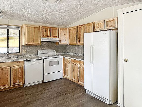 This mobile home has been beautifully remodeled with new flooring throughout. It has all-new kitchen cabinets. Both bathrooms received a complete makeover. The kitchen is centrally located, and is large and roomy, ideal for a person who likes to cook. A dining table to the side makes this a comfortable place to eat as well. In front of the kitchen is a large family room, with plenty of space for activities, entertaining, and relaxing.