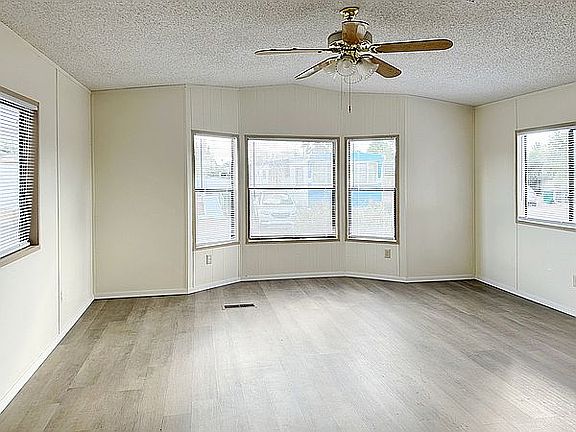 This mobile home has been beautifully redone with new flooring throughout, all new kitchen cabinets, and both bathrooms receiving a complete makeover. The kitchen is centrally located, large and roomy, ideal for a person who likes to cook. A dining table to the side makes this a comfortable place to eat as well. In front of the kitchen is a large family room, with plenty of space for activities, entertaining, and relaxing.