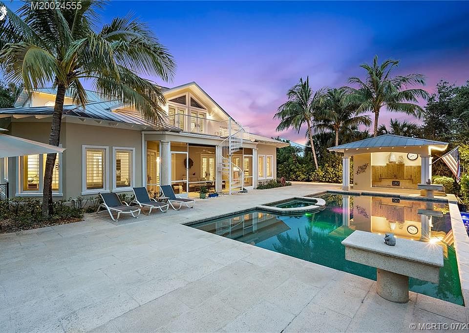 Superbly constructed home on 3.9 acres overlooking Henderson Pond in the beautiful Savannas. The quality craftsmanship throughout the home is apparent in every detail, from the hand scraped wood and Jerusalem stone flooring, the fine millwork in the crown and base molding, the architectural detailing and light bright interiors. Outside water views of the preserves are accented by a sparkling sheer descent pool that includes a swim-up bar with 3 underwater pedestals, spa, fountains and propane lanterns creating the perfect backyard oasis! The property also includes a detached garage, with five car bays, one air conditioned currently used as a studio/workshop, two bays that are oversized with 10' overhead door and is over 30' deep. Above the garage is a two-bedroom, one bath guest suite complete with kitchen, living room and elevator. The gated entrance, Impact glass and a 60kW whole house Kohler generator, add to this one-of-a-kind property with too many details to list here!