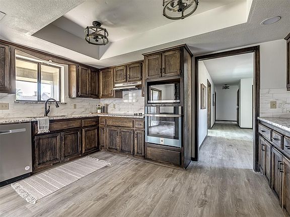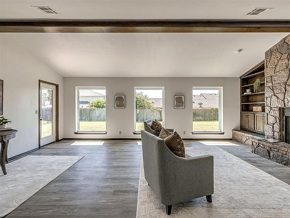 Located in the popular and quiet Quail Brook Addition in Norman. Home is in a great location of West Norman, just minutes away from I-35, many restaurants and shopping. Home is on a very flat 1/4 acre lot with a large backyard. Home has many new updates including all new beautiful light fixtures w/ seeded glass. Luxury Vinyl is found throughout the home, and there is not any carpet in the home. Most of the windows in the home are newer allowing natural light to come in. Once you walk in, the formal dining area will be to the left. The large picture window in the formal dining room allows plenty of light through the front of the home. Kitchen is equipped with granite, new stainless steel appliances, and a brown undermounted quartz sink. The breakfast area is just off the kitchen, and includes a coffee bar. You will love the large living room that includes a cathedral ceiling, 3 big picture windows, built ins, and a gas fireplace. Living room is large enough to have an office area in the back. Bedrooms are spacious and all come with ceiling fans. Main bedroom includes 2 walk in closets. Bathrooms include subway tile showers w/ niches for shampoo, white vanities with marble countertops and undermounted sinks. Backyard is large and flat w/ covered back patio. Backyard is large enough for a pool. Roof is about 3 years old. This is one you won't want to miss! Owner/Agent