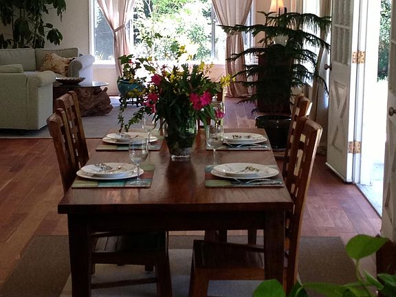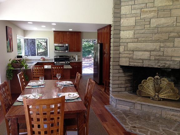 Located within a park and surrounded by natural beauty. Home was remodeled in 2012. The home has an abundance of light with rooms emptying on to a central patio with outdoor fireplace and barbecue. The floor plan is open allowing for personal enjoyment or entertaining. Hardwood floors throughout. Furnished. Tenant responsible for garbage, electrical, phone, internet, gas