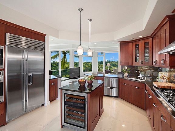 Experience luxury living in Princeville's newest community, Ka'iulani of Princeville. #28 is a premier unit set along a tropical valley bluff with lovely views of Anini stream valley and the Prince course and some Ocean! Take in the sights and sounds of the beautiful valley and ocean through an impressive, 2-story wall of glass or from your private lanai. With nearly 3,000 sqft of air-conditioned living, #28 offers a spacious open floor plan with vaulted 11’ ceilings. Enjoy top-of-the-line appliances including a gas cook top, a large center island, wine chiller and eat-in breakfast nook in the chef-worthy kitchen. Additional cabinetry and bar space wraps into the formal dining area. Attached 2-car garage, large guest suite (serves as a second master suite), laundry room and half-bath are also located on the ground floor. On the lower level, discover the second living area with built-in wet bar (complete with sink and mini-fridge) with the same fantastic views. The grand master suite featuring a spa-style bathroom with atrium garden area, along with the third guest bedroom / bathroom are also located on the lower level. Ka'iulani resort-quality amenities include: 3 terraced pools (heated), a large lava rock Jacuzzi spa, covered pavilion for gatherings and Wolf BBQ's. Minutes away from fine dining, shopping, golf and a number of the north shore's best beaches!