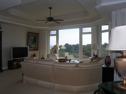 Ocean Views front and center at Ka'iulani of Princeville. This exceptional home offers 2864 square feet of living space on two levels plus a two car garage and a 167 square foot lanai. Enjoy the incredible white water views of Anini Beach and the beautiful blue Pacific Ocean. Gaze across the lush green valley to the world-famous Prince Golf Course and Clubhouse and beyond to the mountains. There are three bedrooms (two are master suites) and three and one half bathrooms. Soaring ceilings in the main living area, upscale details and finishes throughout, a two-story family room and a two-car garage make this home very special. Air conditioning throughout.A gourmet cook will love the Sub-zero stainless steel refrigerator, Wolf stainless steel ovens and a Wolf wine cooler. Slab Granite countertops and custom Aristocratic cabinets provide for elegant living. The laundry room includes a Maytag Neptune Super Stacker washer/dryer.The amenities are the best that the island has to offer: Three heated swimming pools, spa, barbeque area, a lighted walking path and a resident manager.