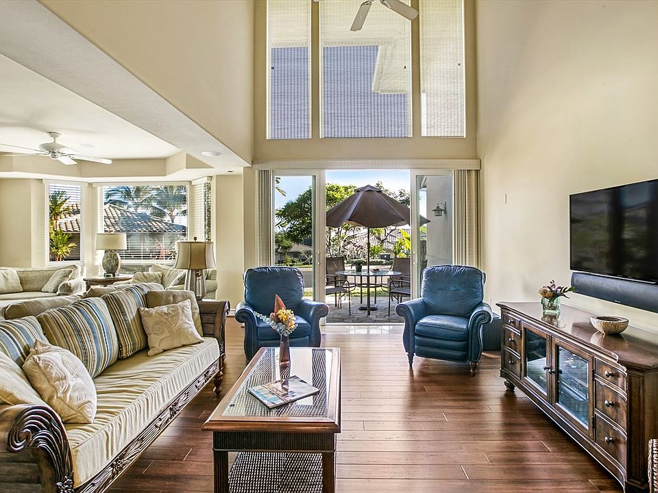 Ideal 2-Bedroom Opportunity at Ka'iulani! This luxurious town home is located in one of the most prestigious neighborhoods in Princeville. This is an end unit “B” model in a prime location with ocean views from upper floor. The 18-foot ceiling and 2-story floor-to-ceiling windows in the main living area gives it a very open and spacious feel. Fine finishes include new hardwood floors, slab granite counter tops, Aristocratic cabinetry, Subzero/Wolf built-in appliances and full size Washer/Dryer. Upgraded home theatre system valued at $18,000. New A/C system offers a comfortable, controlled climate throughout! Quality custom furnishings and decor included. Spacious open floor plan and attached 2-car garage make this feel more like a home than a condo! Ka'iulani of Princeville is a low-density resort community. With buildings spaced 25 to 35 feet apart, the site plan fosters a single-family feel in a five-star resort setting. Located on an 18-acre parcel in Queen Emma's Bluffs. The land is on a peninsular bluff with the Prince Golf Course's 8th fairway to the west, the Pacific Ocean to the north, and a 250-foot deep valley and Mount Kilauea beyond to the east. To the south is the entire Namahana mountain range. Enjoy resort-like amenities: three heated pools, spa, two BBQ areas, and covered pavilion. Ka'iulani also features mature tropical landscape and one-half mile lighted walking path plus a resident manager. This is the lifestyle you have been searching for... a single family home feeling in a convenient, condominium setting!