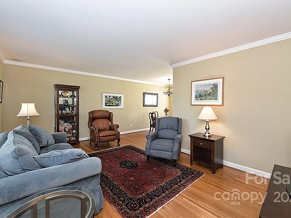 Incredible opportunity in Beverly Woods! Fabulous one-story full brick home on stunning, private lot with hardwood floors throughout the main living areas. Welcome in to the foyer leading to open and spacious living room overlooking beautiful front yard, dining room adjacent to kitchen with freshly painted cabinets and sunny window with backyard views. Cozy den with fireplace and double doors leading to sunroom with floor to ceiling windows overlooking scenic and private backyard! Three bedrooms all with wood floors and ceiling fans, updated hall bath and primary bathroom both with tile floors and pedestal sinks. Great utility closet off the sunroom for storage and laundry. Two-inch window blinds throughout the home! The fabulous backyard is entirely fenced and features a stunning brick patio, storage shed and landscaping for privacy. Great location between the Harris Y and SouthPark Mall! Easy access to I77 and the airport. Highly rated Myers Park schools!