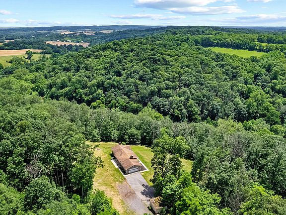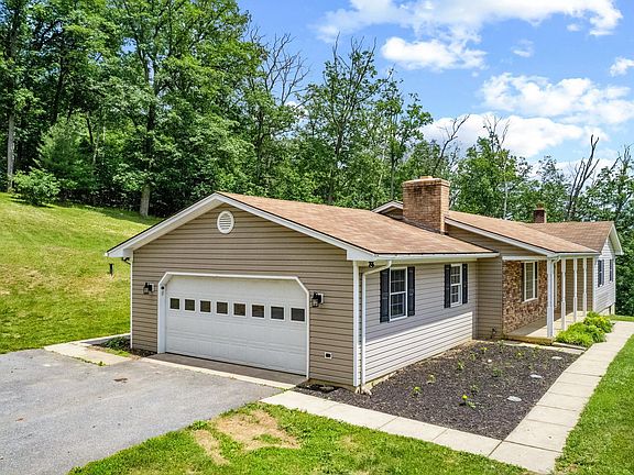 Come visit this wonderful home that sits on a beautiful nearly 23 acre lot. This beautiful lot offers spectacular views of the distant mountain range from a number of locations. Be sure to take a stroll through the walking trails and take in the views and abundance of deer, wild turkey. and mature hardwoods. The home's main level features a large living room with a wood-burning stove, a country kitchen, a dining room, and three large bedrooms including a primary suite with a full bathroom. A second full bath can be found off the hallway just outside the additional bedrooms. The laundry room and drop zone are located just off the garage entry to the home. Hardwood floors can be enjoyed throughout the main level. Sliding doors off the dining room lead to a large backyard with a patio. Perfect for entertaining. Relax on the covered front porch and enjoy the view. The lower level is fully finished and features a large family/rec room with a wood-burning stove. A fourth bedroom/den with a walk-in closet and an office/5th bedroom are also located on the lower level. A full refrigerator and water hookups are on the lower level as well as a third full bathroom. This could easily be finished into a full in-law suite. Completing the kitchen on the lower level is all that's left to do. A large storage room completes the lower level. A large storage shed is also included. Do not miss the opportunity to see this rarely available outdoorsmen-friendly oasis. Interior and drone photos will be available available shortly.
