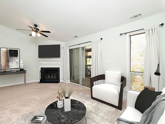 Great location in Raleigh! Immaculately maintained condo. SS appliances, quartz countertops and new water filter in kitchen. Enjoy the living room with wood burning fireplace overlooking the deck and serene view. Spacious back deck overlooks a beautiful and private wooded area. Conveniently located near Crabtree Valley Mall,Rex, 40 & 440. New roof in 2022, Exterior and Interior paint 2022, New HVAC 2018 HOA includes water/sewer/trash, tennis courts and POOL.