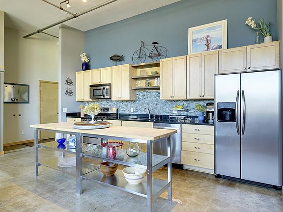 Converted from a 1940s schoolhouse, the Brookside Lofts are a piece of history, and feature incredible architecture and authentic loft features. From the terrazzo hallway floors to the 11’ ceilings to the 8’ tall windows, you won’t find details like these in new construction. This gorgeous top floor unit features two bedrooms on either side of the expansive great room, incredible natural light, and a beautiful kitchen with a big center island. Additional highlights include the spacious master suite with walk-in closet and private bath, full second bedroom and bathroom, outdoor balcony, pantry, in-unit laundry, heated underground parking, and separate storage unit. Easily walk or ride your bike to nearby amenities by taking the pedestrian bridge over Highway 100. Outstanding location with quick access to freeways and and tons of great shopping including Trader Joe’s, Starbuck’s, Fresh Thyme Farmer’s Market, Chipotle, Caribou Coffee, Target, Lunds & Byerlys, Core Power yoga, much more!