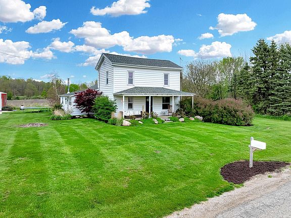 Escape to the peace and beauty of country living with this charming farmhouse set on 2.75 scenic acres. Surrounded by mature trees and open fields, this property offers the perfect blend of serenity and space to spread out. Whether you're dreaming of having your own chickens for fresh eggs, a garden to enjoy growing your own produce, or feeling adventurous with dirt bikes or ATVs, the possibilities are endless. The updated interior is move-in ready, welcoming you with an entryway ideal for relaxing with a good book. The home’s open layout leads into an airy dining room, perfect for hosting family gatherings, while the bright kitchen, filled with natural light, brings the outdoors in. The inviting living room is great for movie nights or step right outside onto the covered porch to enjoy the twinkling stars. The main level also includes two comfortable bedrooms and a full bathroom. A room off the back door is set up as a convenient drop zone featuring a utility sink and washer/dryer. The wood-burning stove adds warmth and charm, making this home feel extra cozy in cooler months. Upstairs, a loft area provides the perfect space for a playroom, reading nook, or home office, and a spacious third bedroom completes the upper level. Outside, a 26' x 40' outbuilding with a wood-burning stove is ideal for storing your toys or working on year-round projects. Whether you're looking to start a hobby farm, raise 4H animals, or simply enjoy the peaceful outdoors, this property offers the lifestyle you’ve been waiting for. Don’t miss your chance to own a piece of country heaven!