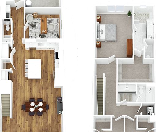 The Townhomes at Scottsdale feature 3 spacious bedrooms plus an additional office or flex space, ideal for working from home or creating a personal retreat. Each townhome has two full bathrooms and one powder bathroom with high-end finishes and contemporary fixtures.